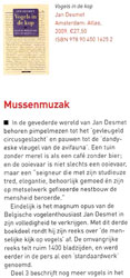 ![]() ‘Eindelijk is het magnum opus van de Belgische vogelenthousiast Jan Desmet in zijn volledigheid te verkrijgen. (...) Alledaagse vogelobservaties las je niet eerder zo poëtisch verwoord als in dit boek.’ Natuurwetenschap & techniek (Tamar Stelling) februari 2010 Volledige tekst: klik op afbeelding.